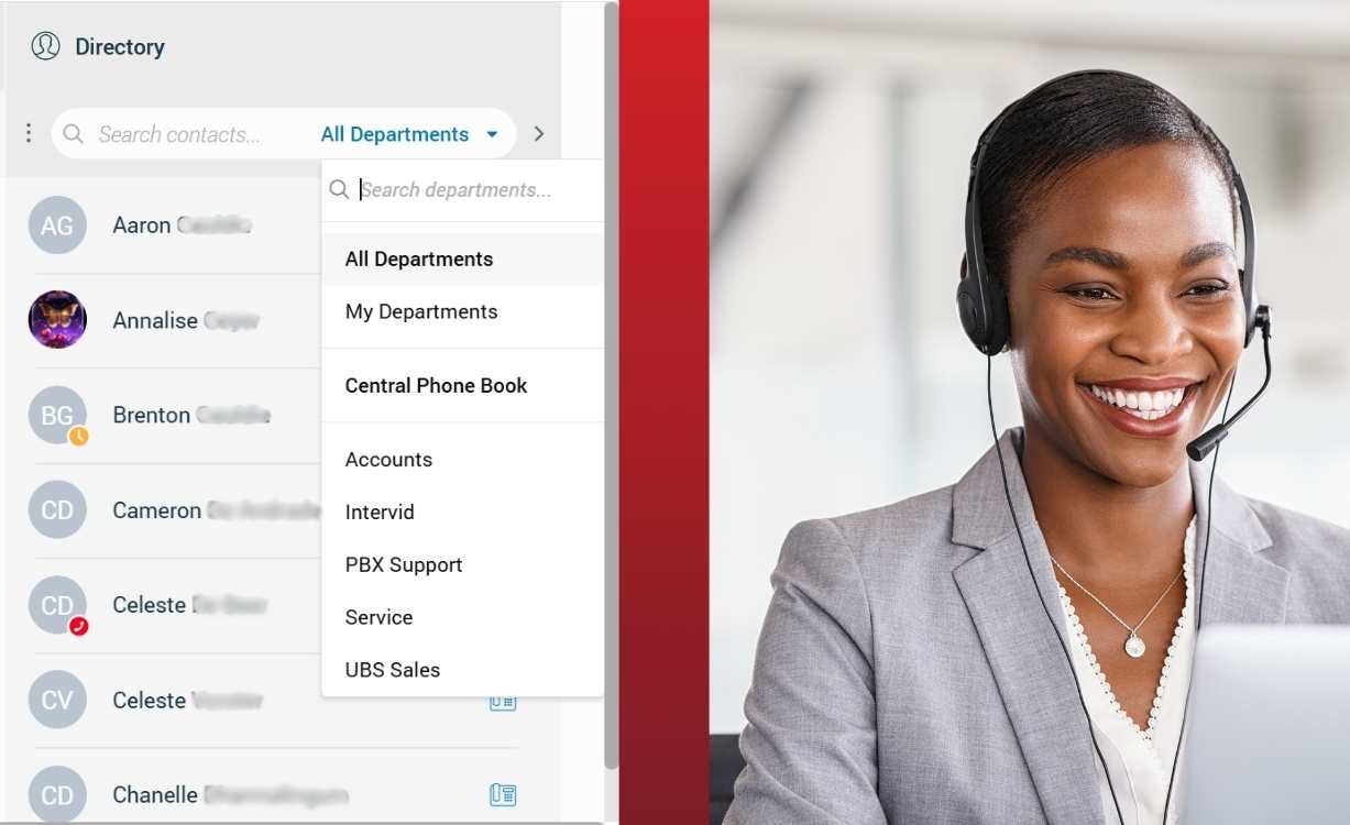• Full PBX features in Teams, including calling, SMS, voicemail, call recording, conferencing, and presence syncing